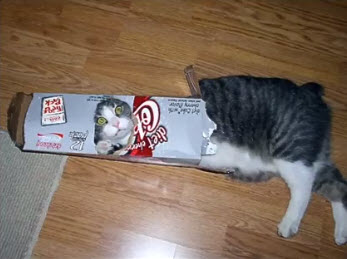 There are times when I’m sure the person who invented cardboard did it for his cat. You don’t have to be a cat owner (ownee, is more like it) to have noticed how an empty cardboard box — of any shape or size — is an instant domestic cat magnet. Case and point…